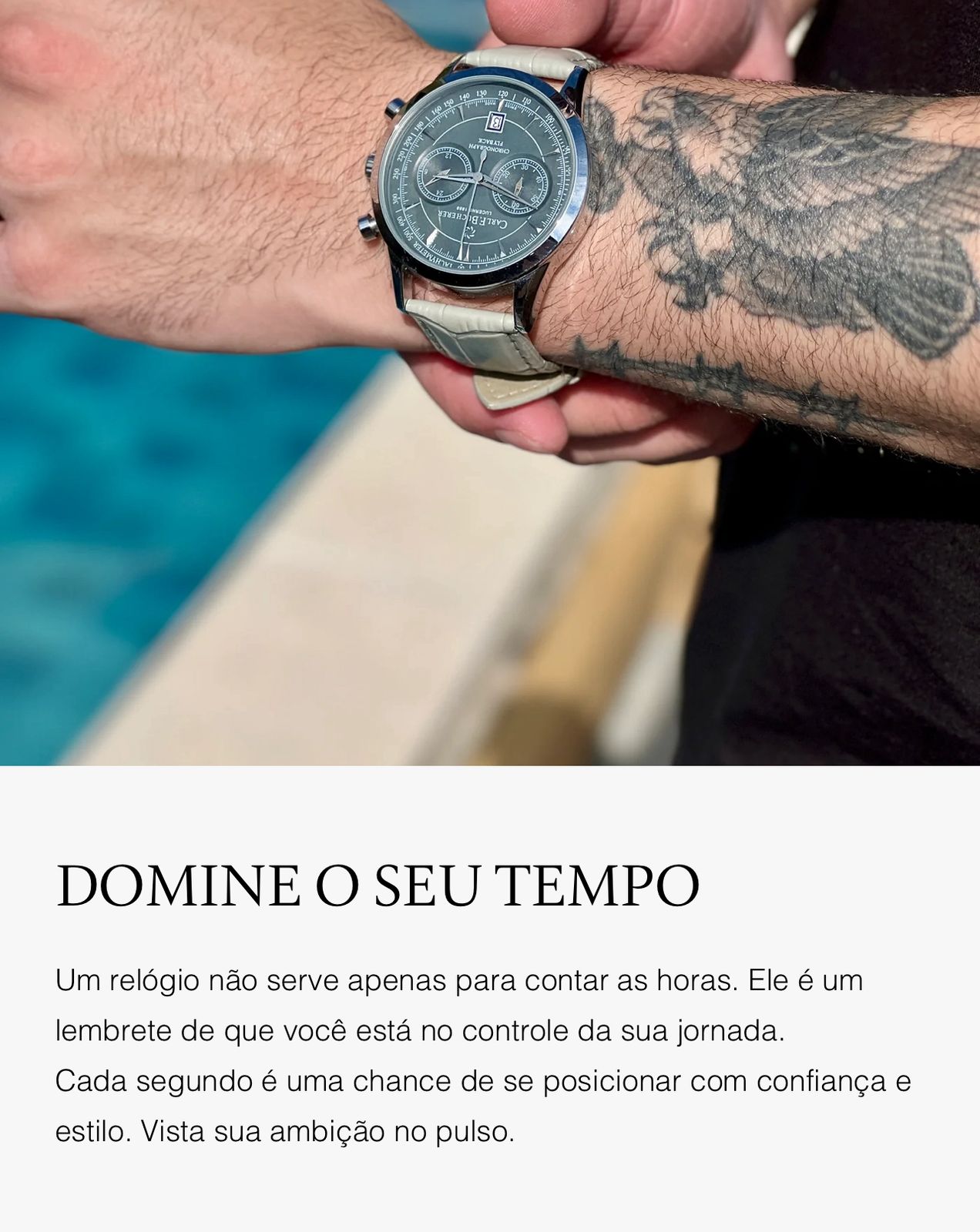 A pulseira em couro suíço legítimo garante uma sofisticação e elegância inigualáveis, além de proporcionar conforto na utilização do dia a dia.